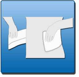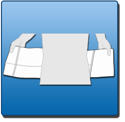 Open the support and lay it on a flat surface - for example, a bed - with the inner lining facing up. Lie down and position the support under your back. Take the wide pad and stretch it over your abdomen or over the surgical dressing.