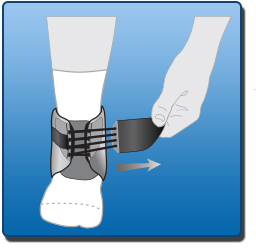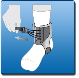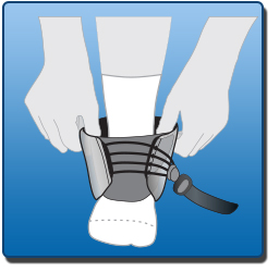 Unfasten the smaller top strap and loosen the laces. Holding the Ankle Lacer with both hands, slide the foot into the support.