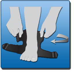 Bring the bottom left strap over the foot and fasten to the opposite side of the brace.