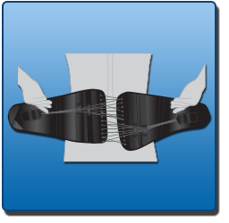Open all straps. Center the support against your lower back with the lacing centered across the spine.