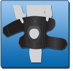 Position the stabilizer over your knee, with the iGO logo on top of the knee. Position the opening over your kneecap.