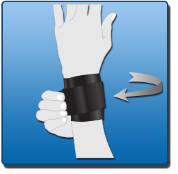 Open all straps. Position the pressure pad over the base of your palm. Wrap and secure the main strap.