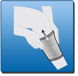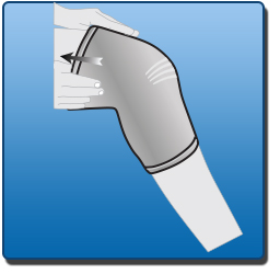 Starting with the wider end, slide the elastic support up the leg and over the knee.